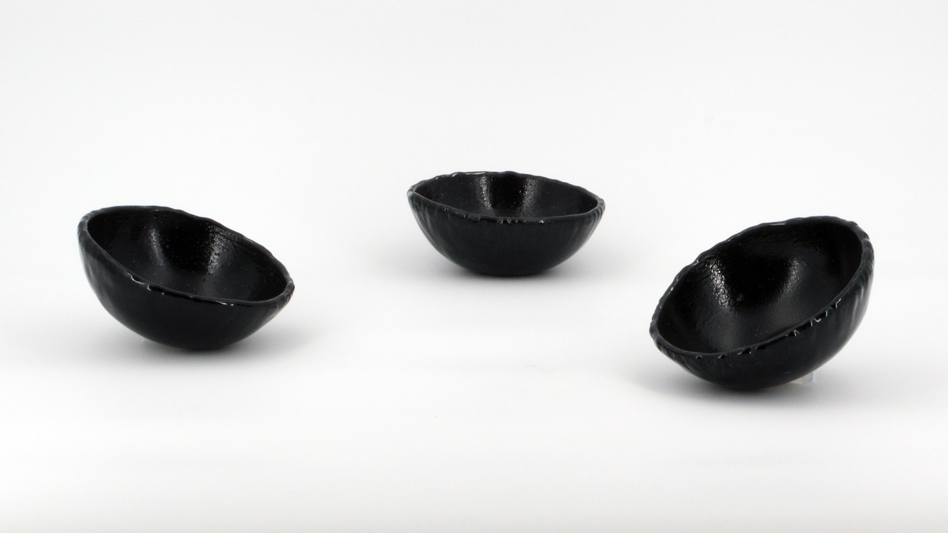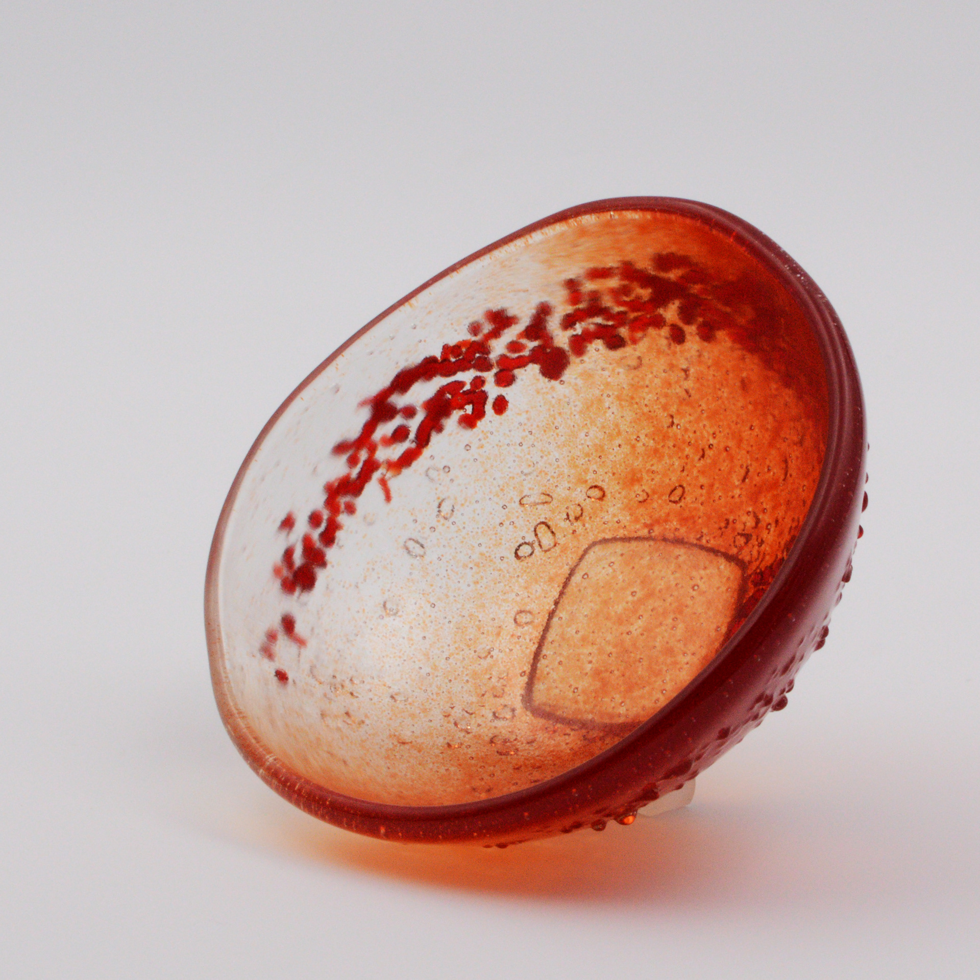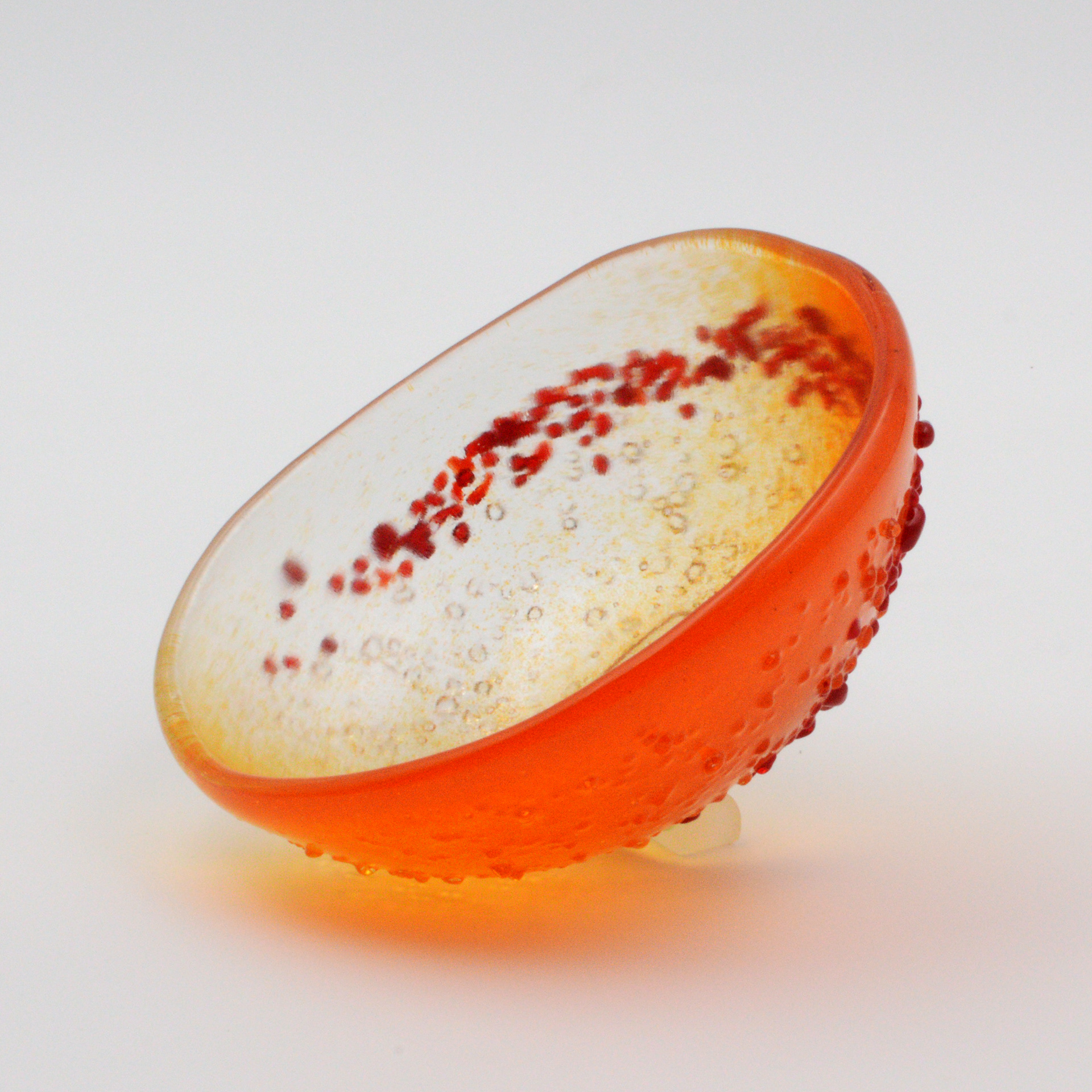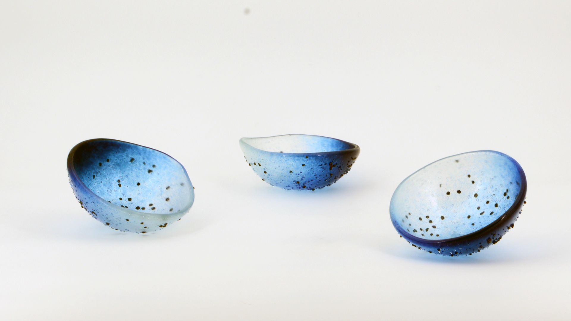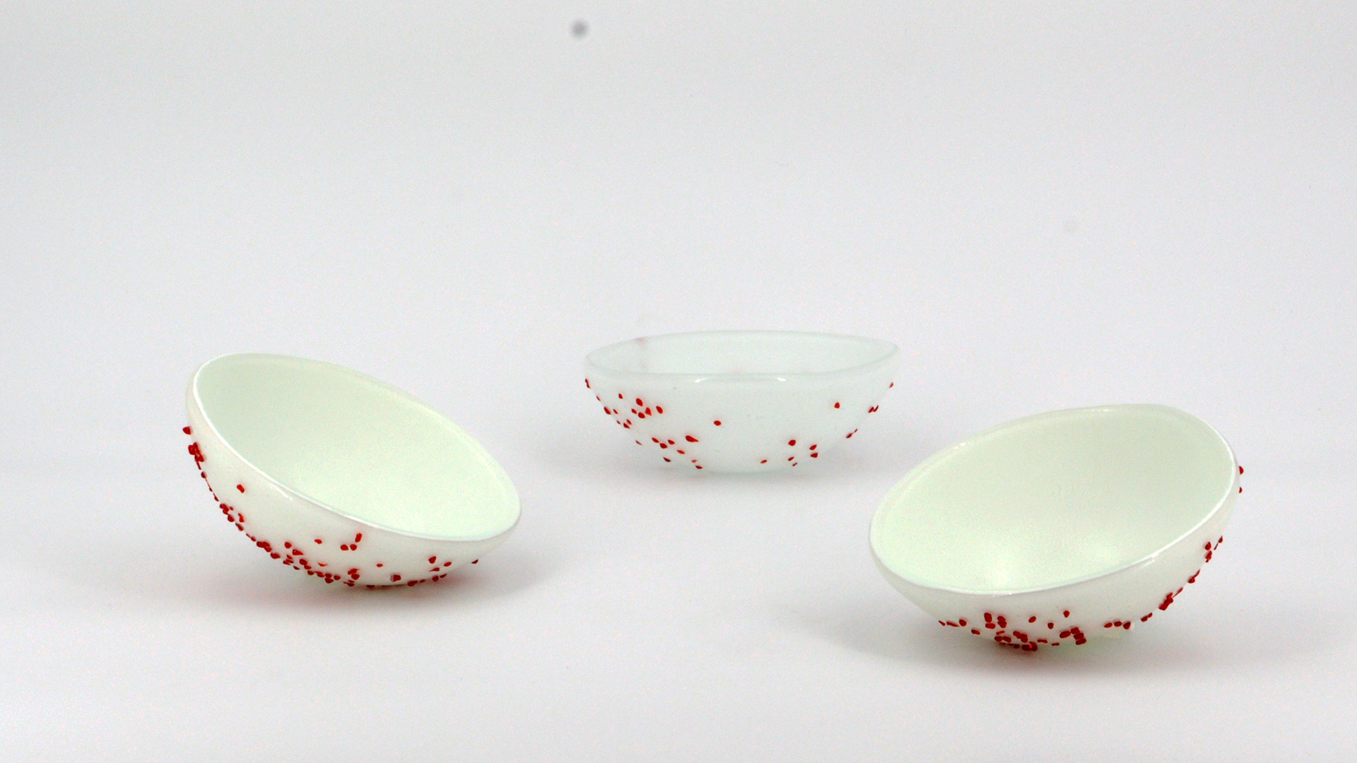 Les Turning Bowls sont des petits contenants alimentaires en verre aux couleurs dynamiques, réalisés à la main grâce aux techniques d'émaillage et de thermoformage. Il peuvent accueillir vos desserts comme vos apéritifs avec stabilité grâce à leur petit pied carré. L’œil aura plaisir à parcourir les infinies nuances de couleurs du verre constituées par un très léger dégradé. Décliné en trois gammes colorées, les décors sont dessinés pour créer un dialogue entre fragments et poudres de verre. Les grains de couleur sont positionnés un à un afin de tourner sur la surface du bol pour se fondre naturellement dans le dégradé de couleur généré par la poudre. Cet ensemble évoque les différents états du verre lors de sa fusion ; de son aspect brut, minéral et inerte, à des pics de couleurs vives et intenses lors des fusions.