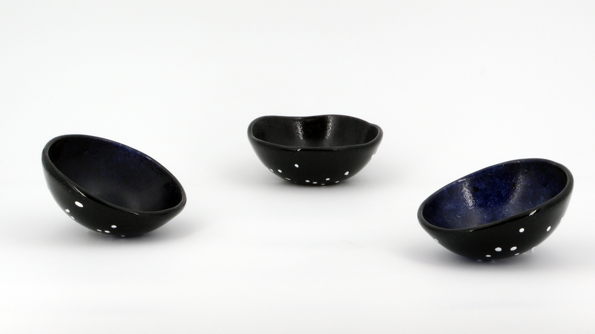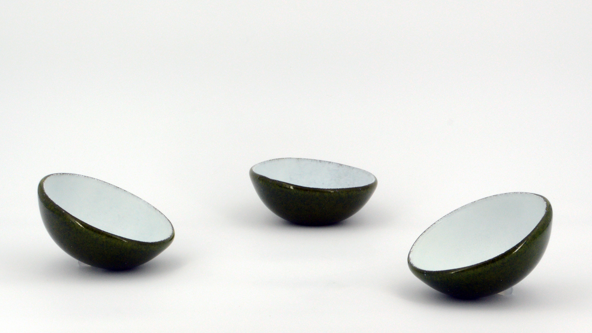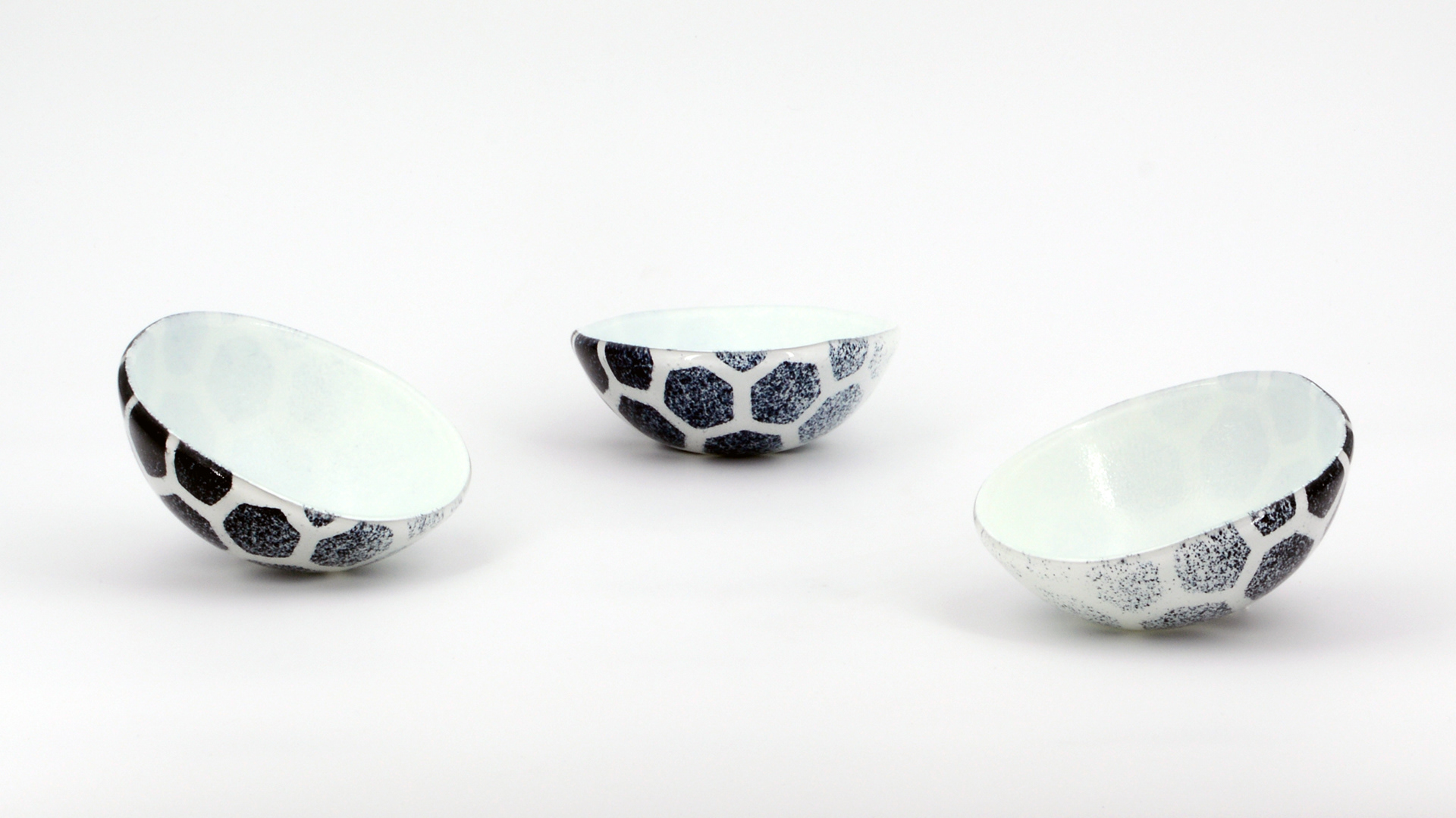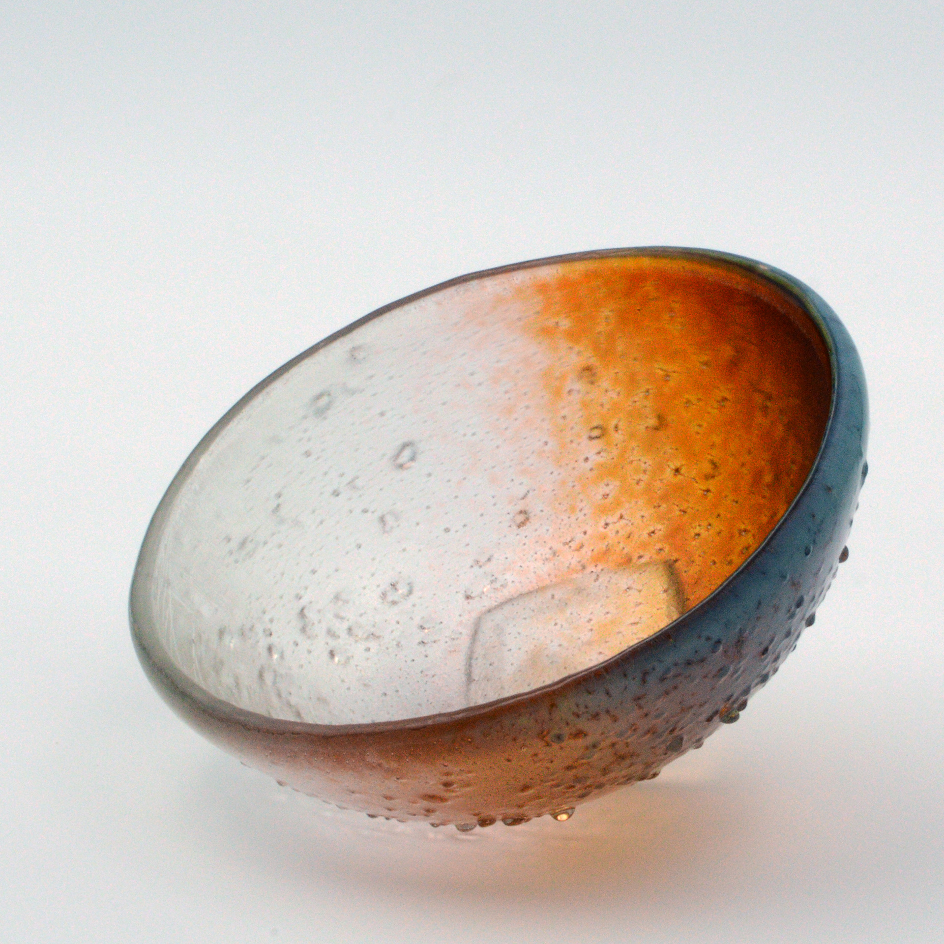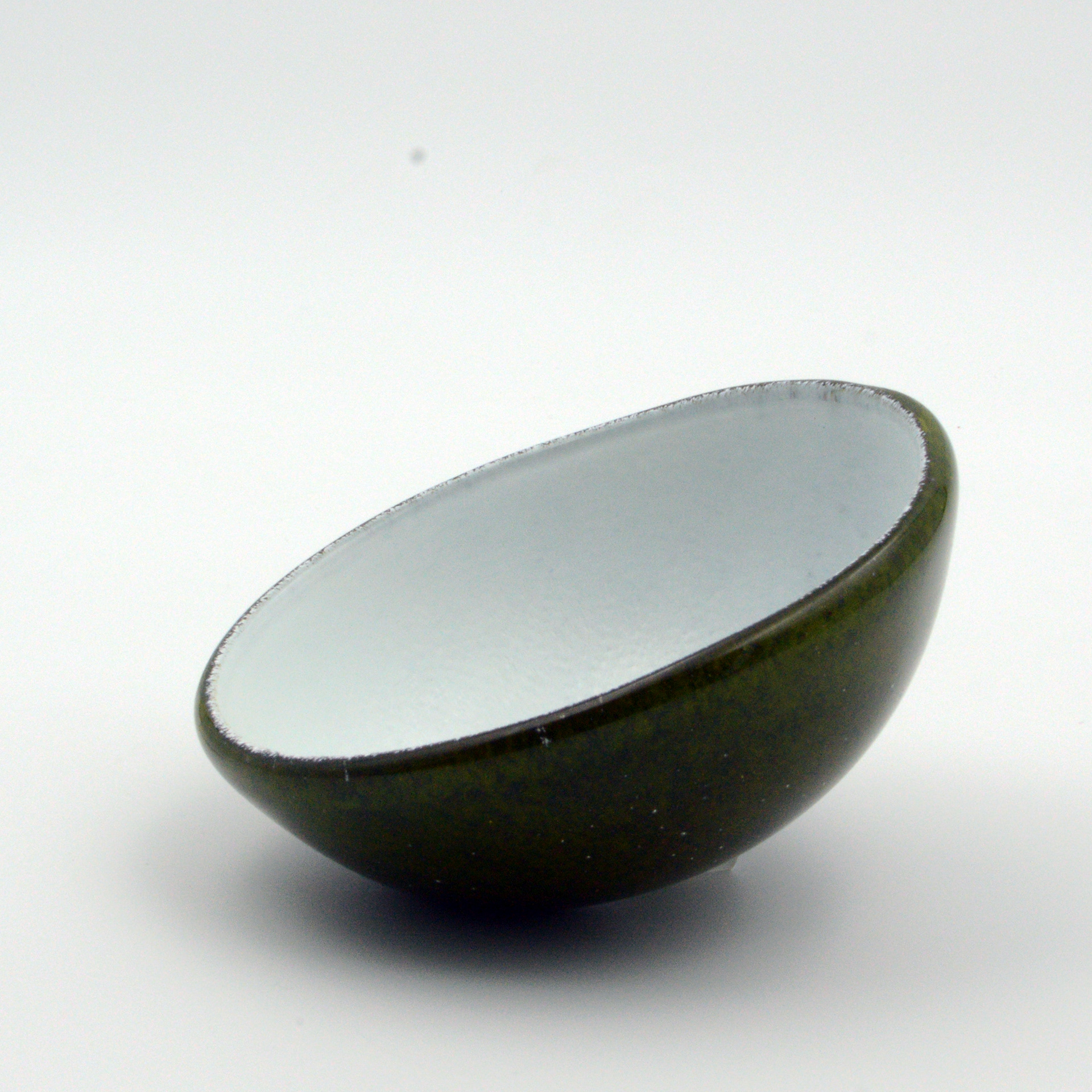 Le corps du bol est émaillé à la main par saupoudrage, puis fusionné à 780°C lors d'une cuisson de plus de 2 jours. Vient ensuite l'étape du thermoformage qui va donner sa forme unique au bol, tout en permettant de fusionner son pied et sa carapace de verre...